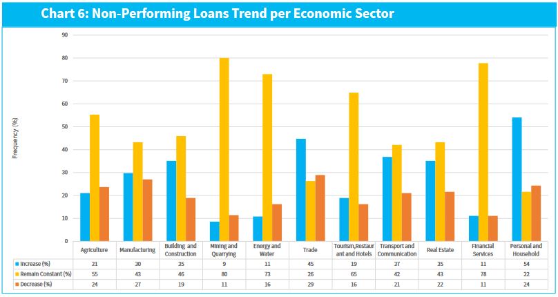 Credit officers projected an increase in non-performing loans (NPLs) in the Personal & Household and Trade sectors for the next quarter, mainly attributed to the general economic environment and repayment challenges faced by borrowers in these sectors.